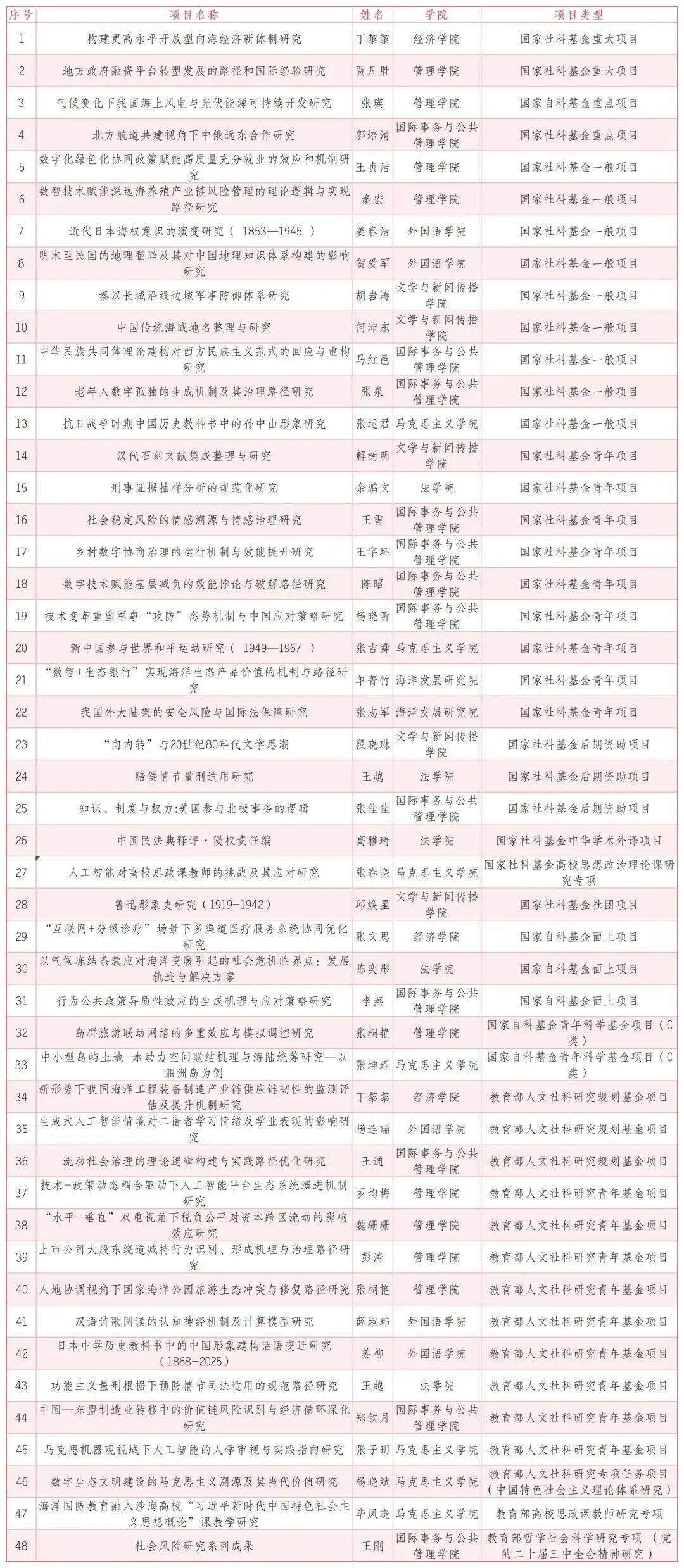 名单公布!中国海洋大学人文社科高层次项目立项项目(2025年度)星空体育- 星空体育官方网站- APP下载:国家社科基金27项国家自科基金6项……