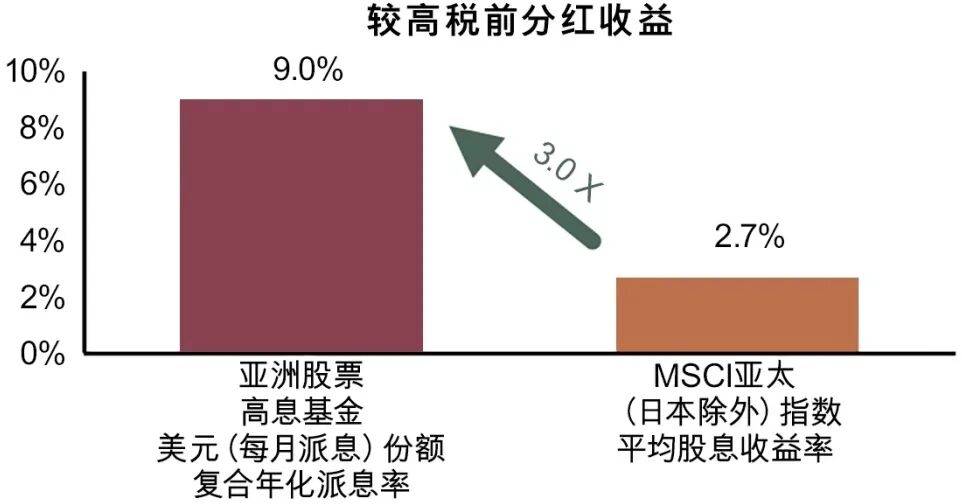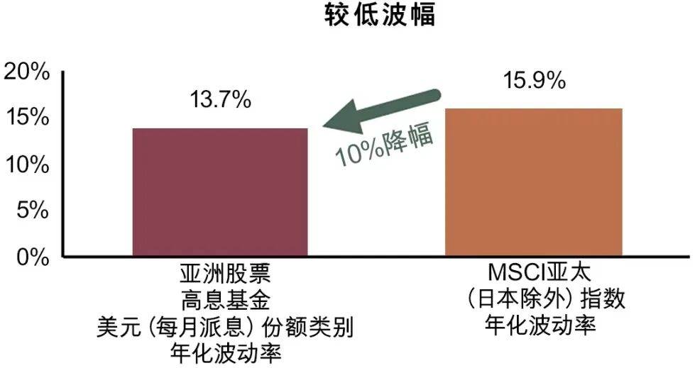 自美元(每月派息)份额类别成立以来,其税前月均派息率为0.72%(折合复合年化派息率为9.0%)这里*,是基准指数平均股息收益率的3倍,同时年化波动率降低约10%