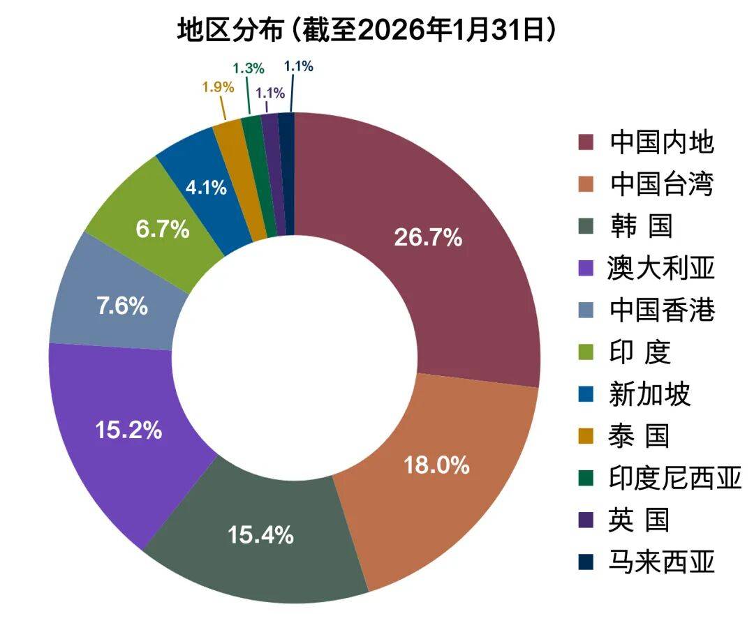 资料来源:摩根资产管理,数据自美元(每月派息)份额类别2023年12月21日成立以来截至2026年1月31日。本基金基准指数为MSCI亚太(除日本)指数。