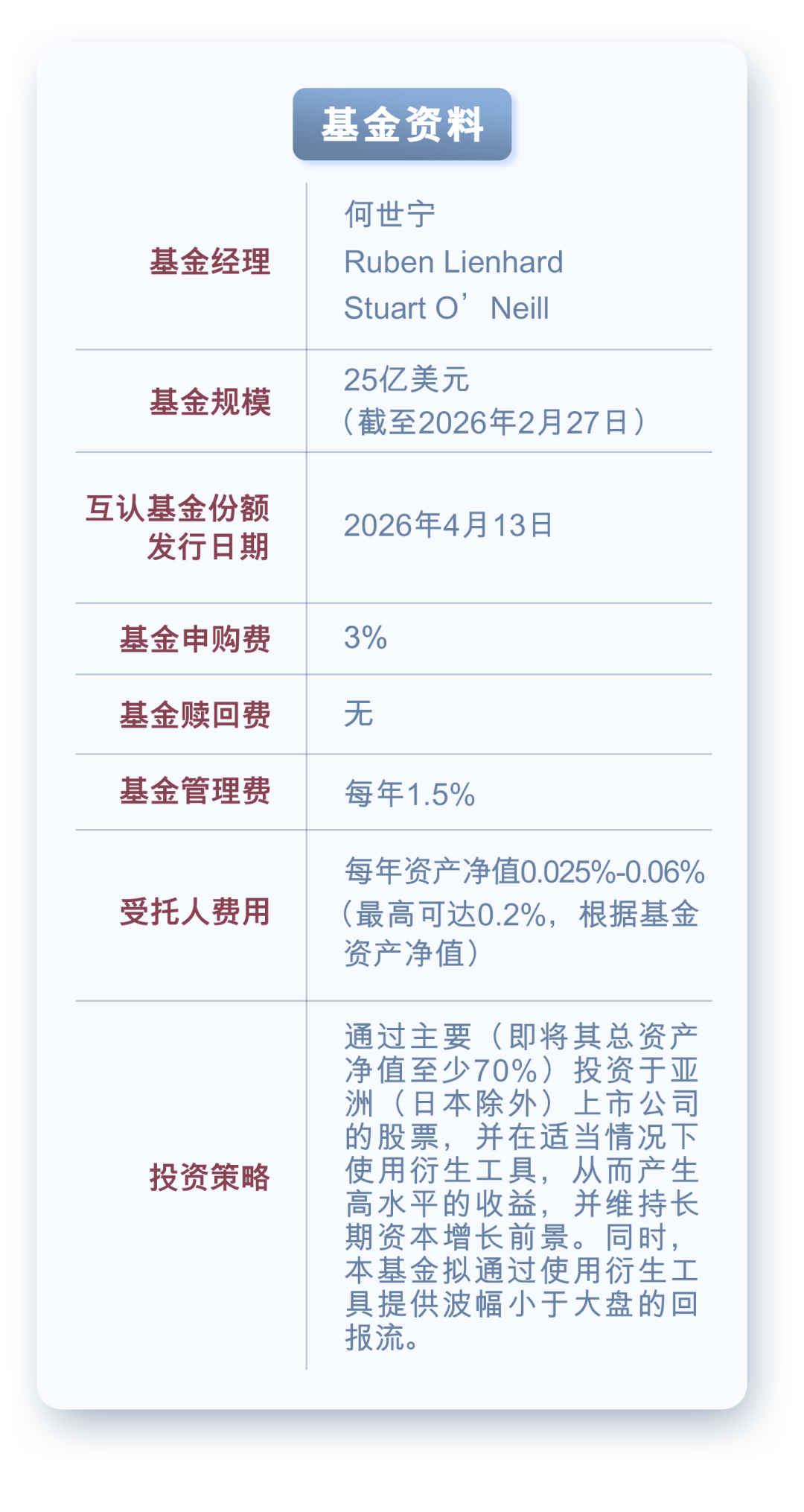 本基金主要(至少70%)投资于亚洲(日本除外)上市公司的股票证券,并在适当情况下使用衍生工具。