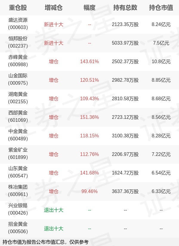 2026-04-23星空体育,星空体育官方网站,星空体育APP下载证券之星消息,4月22日前海开源基金旗下吴国清管理的前海开源金银珠宝主题精选灵活配置混合型基金公布一季报,近1年净值增长率67.79%。与上一季度相比,该基金前十大重仓股新增盛达资源,恒邦股份;并对赤峰黄金增仓1475.18万股,为该基金第一大重仓股;兴业银锡,招金黄金等退出前十大重仓股;详细数据如下:
