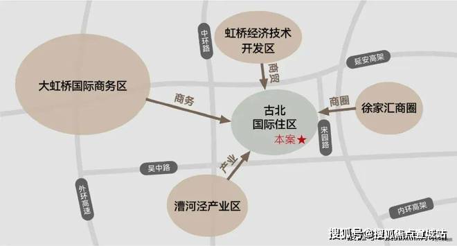 另一方面,古北周边产业聚集,东侧是徐家汇商圈,北侧是虹桥经济技术开发区,南侧漕河泾,西边大虹桥国际商务区。