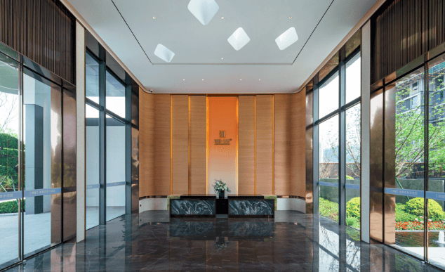 建筑设计:采用极简 “L” 型超纤细铝板线条,融合大面玻璃、石材等高级质材打造寰幕立面,筑就嘉兴全新的 “天空之翼” 建筑封面。
