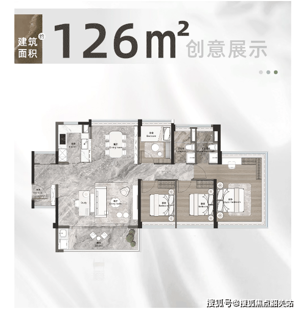 项目主力户型建面约83-126㎡,全部实现全南向布局与高使用率。83㎡三房两卫为单边位设计,空间利用率优于传统同面积段;99㎡四房配置IMAX宽景阳台与主卧三面环幕飘窗,LDK一体化公区可灵活改造为“超聚厅”;109㎡四房实现4.5开间朝南、双阳台、南北对流,次卧均能三边下床;126㎡五房更做到5.5开间朝南、四卧室南向,玄关设800库收纳系统,功能与舒适度兼备。所有户型均通过新规优化,避免“为多一房牺牲尺度”的常见痛点,在实用性与居住感之间取得精妙平衡。