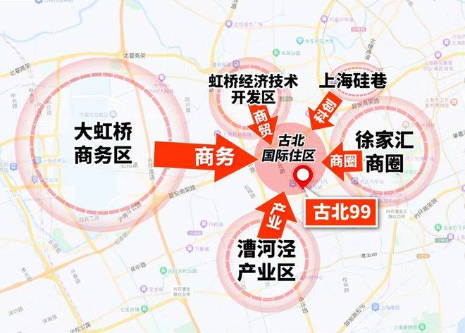 而古北就位于这些产业区的中心节点上,是承载它们高端居住再好不过的区域。