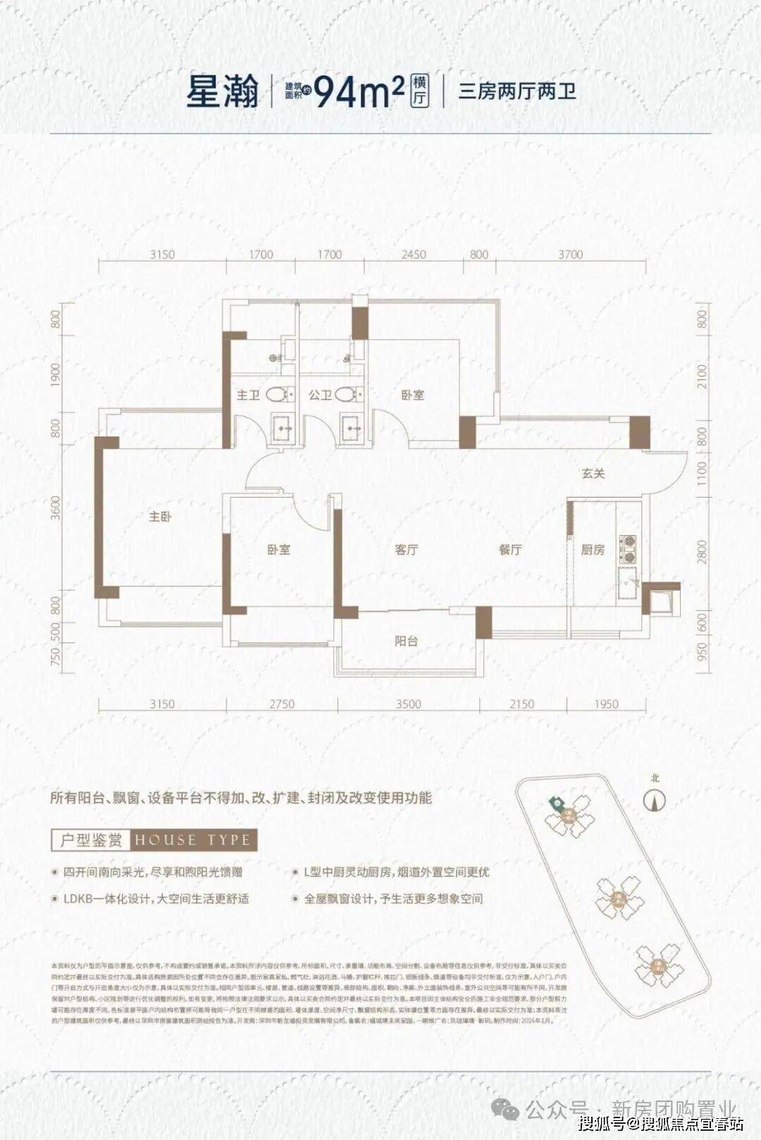 产品方面,项目主推建面约77-111㎡的三至四房,涵盖77㎡三房一卫、87-94㎡三房两卫及111㎡四房两卫,全部采用蝶式布局实现户户朝南(东南或西南向),部分中高层可眺望九龙山郊野公园景观-3。作为深圳建筑新规后的标杆产品,户型综合得房率高达97%-105%——77㎡户型LDKB一体化设计,三开间朝南,得房率约88.34%;94㎡横厅户型全屋多达10面飘窗,得房率约93.73%;111㎡四房为独门独户横厅南北通透格局,客餐厅开间达6.2米,连接6.8米长南向大阳台,得房率约95.73%-1-4。装修标准方面,项目甄选国内外一线品牌精装交付,配备中央空调等高品质配置-5。