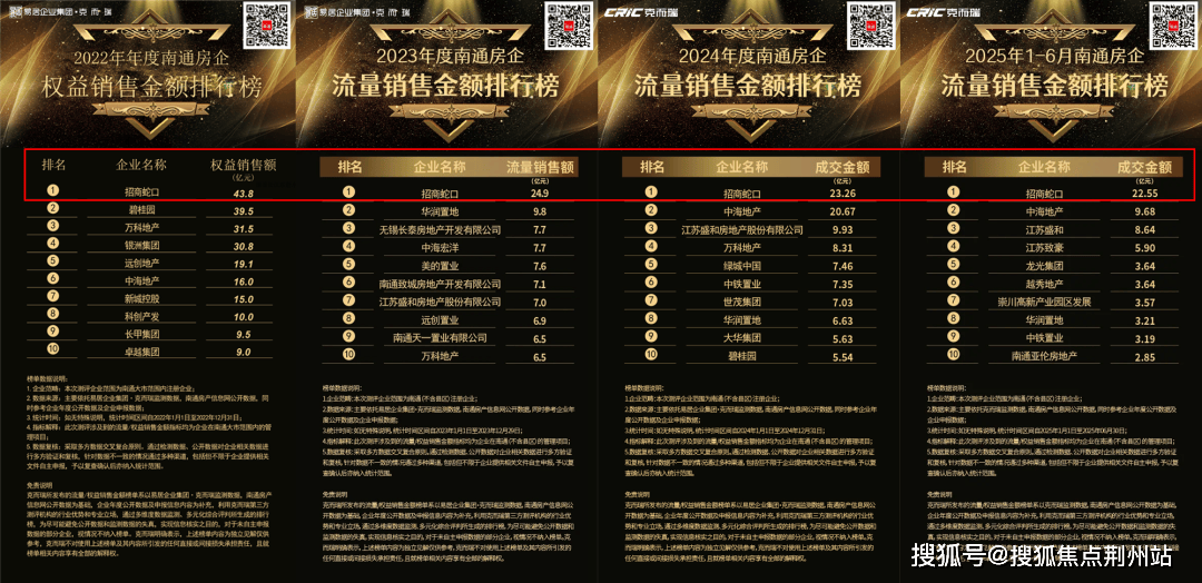 据克而瑞相关数据统计,招商蛇口连续近4年蝉联年度南通房企流量销售金额排行榜top1,强大的央企实力与品牌号召力不言而喻。