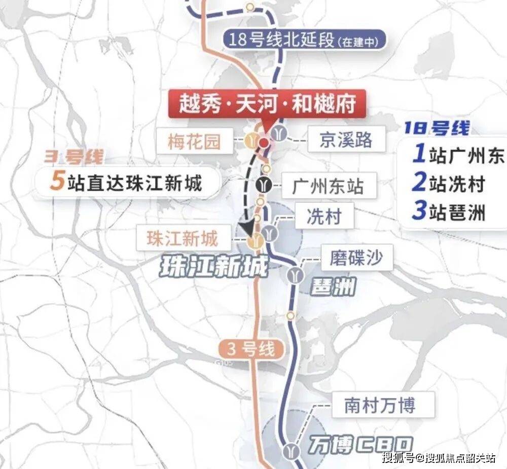 越秀天河和樾府同样表现卓越。距地铁3号线站直达珠江新城,无需换乘,这种通勤效率在广州主城区极为罕见。同时,在建的地铁18号线北延段京溪路站开通后,将实现2站可达冼村,3站直达磨碟沙,快速连接琶洲、南沙等区域。这种“双轨交汇”的交通格局,不仅极大地缩短了物理距离,更打通了心理距离,让住在城北也能轻松享受城南的繁华。